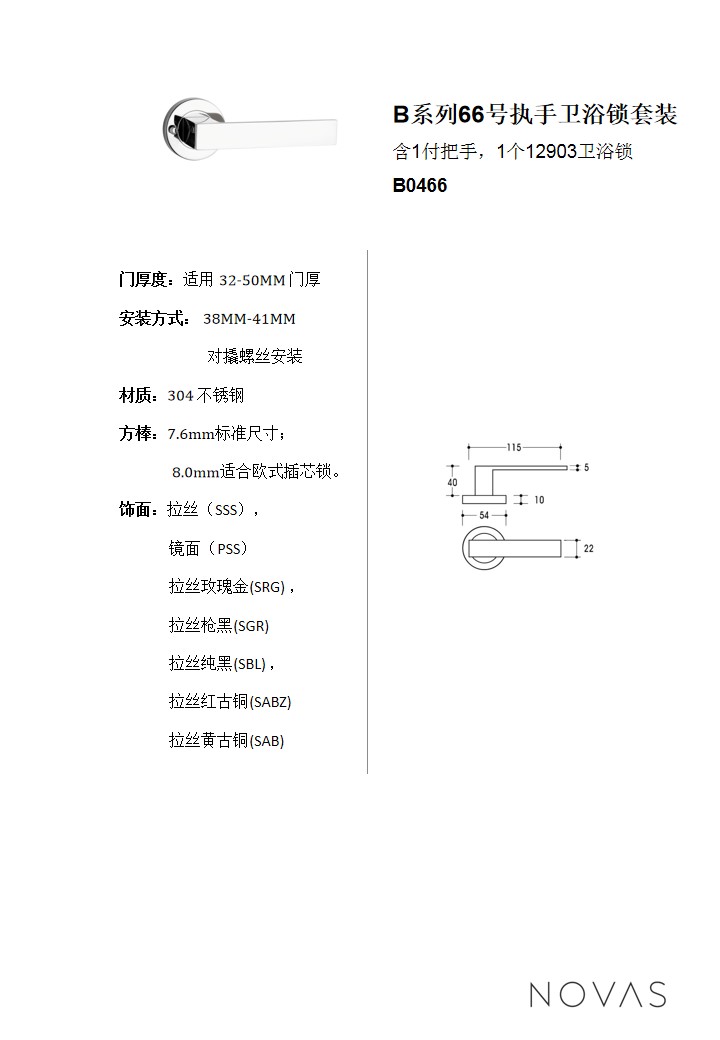 B系列66號執手衛浴鎖套裝