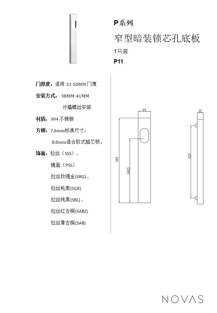 窄型暗裝葉片鎖孔底板 1只裝 P11