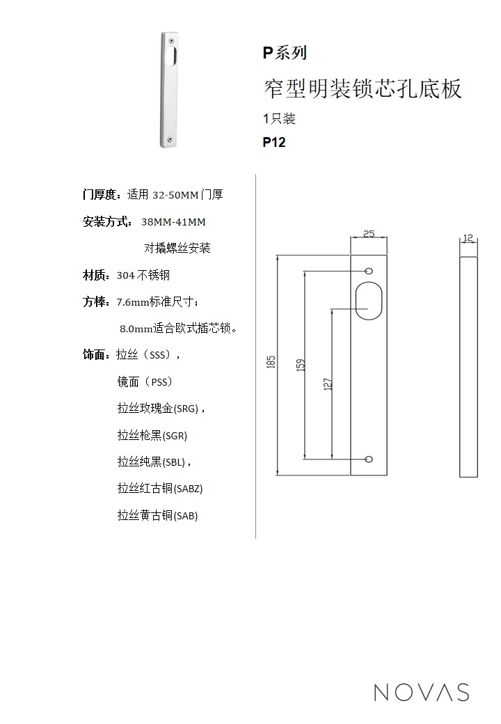 窄型明裝防盜門鎖芯孔底板 1只裝 P12