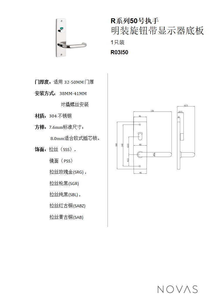 R系列產品50號執手明裝旋紐帶呈現器底板