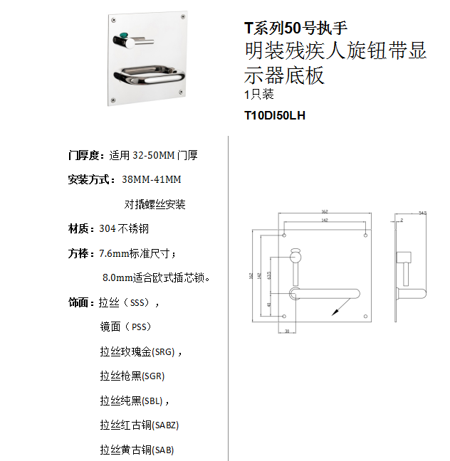 T系列50號執手 明裝殘疾人旋鈕帶顯現器底板