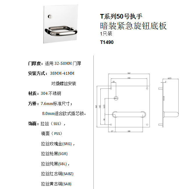 T產品系列50號執手 暗裝告急旋轉開關底板