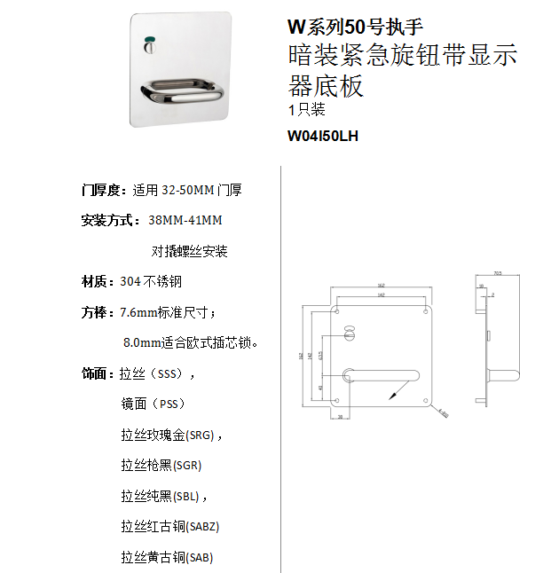 W系列50號執手 暗裝告急旋鈕帶顯現器底板