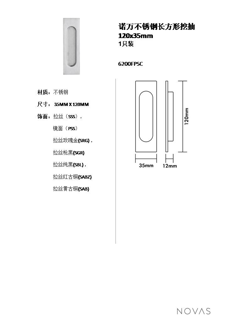 一品楼新论坛诺万不锈钢长方形挖抽 120x35mm