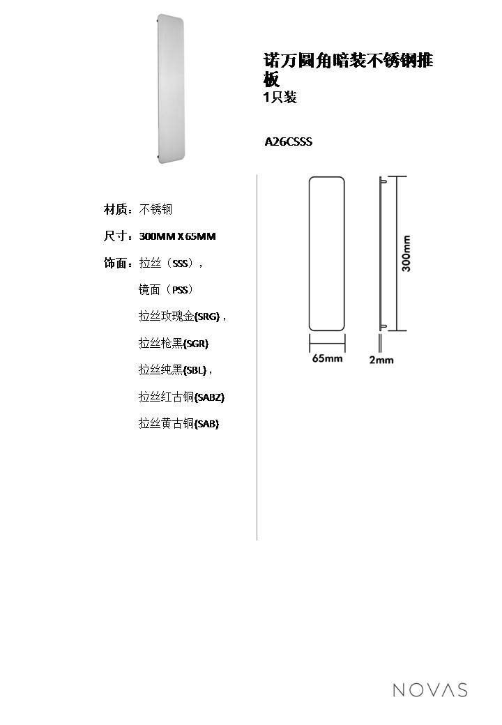 諾萬圓角暗裝不銹鋼推板