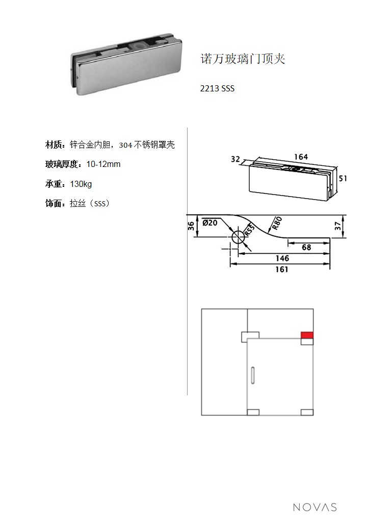 諾萬玻璃門頂夾